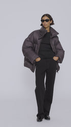 SOHO to oversize’owa puchowa kurtka z wysokim kołnierzem otulającym szyję. Zapinana na suwak kryty plisą z napami, z nową konstrukcją rękawa – wykończonego wszytym, dresowym ściągaczem, który nadaje jej miękką linię i podkreśla objętość formy. Wewnątrz na wysokości bioder znajdują się subtelne gumki umożliwiające regulację. Uszyta z wodoodpornej i wiatroszczelnej tkaniny, wypełniona certyfikowanym gęsim puchem, pozostaje lekka i komfortowa nawet w mroźne dni.