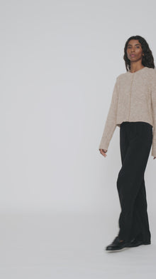 Cardigan LUNA został wykonany z delikatnej i puszystej wełny alpaki. Długie rękawy i dół swetra wykończone zostały delikatnym ściągaczem. Sweter posiada zaokrąglony dekolt i zapięcie na guziki.