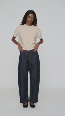 JEANS 05 BALLOON to spodnie o luźniejszym fasonie z nogawką typu barrel, wykonane z bawełnianego denimu. Wysoka talia, lekko zwężająca się ku dołowi nogawka i skrócona długość nadają sylwetce nowoczesne proporcje. Prosta konstrukcja i solidna bawełna sprawiają, że model dobrze trzyma formę i pasuje do wielu stylizacji.