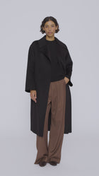 Długi płaszcz CARTER o prostej, lekko luźnej formie, wykonany z wełny typu double face – dwie warstwy materiału są ręcznie łączone, dzięki czemu płaszcz nie wymaga podszewki i zyskuje czyste, wyrafinowane wykończenie od wewnątrz. Pozostaje lekki, a jednocześnie ciepły i stabilny w formie. Szeroki kołnierz i kryte guziki podkreślają jego minimalistyczny charakter. Dostępny w dwóch kolorach.